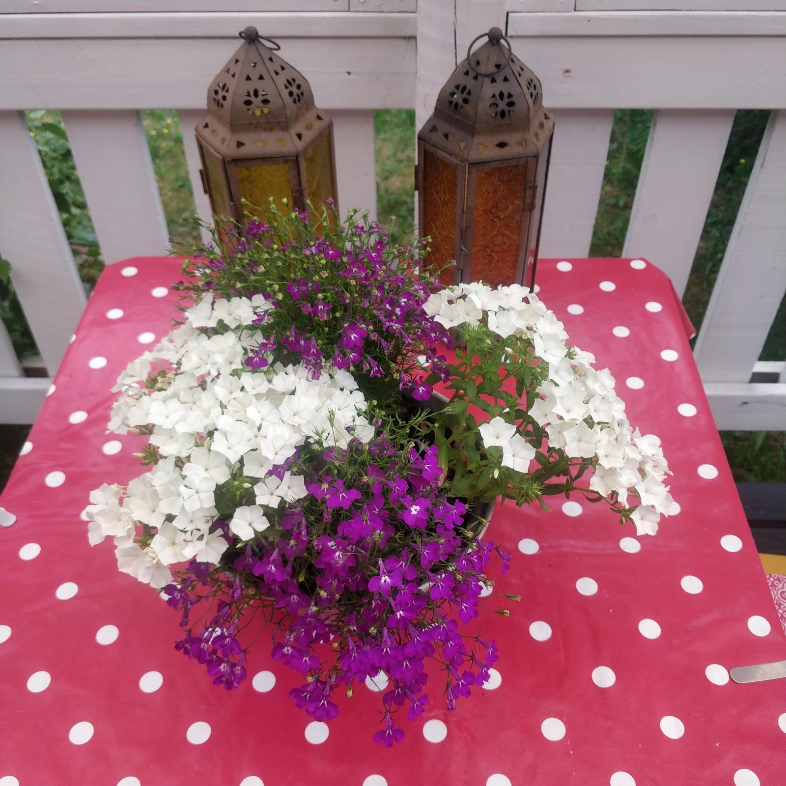 Koko viikko hellettä, tänäänkin melki 30 mittarissa, ei kivaa ainakaan mulle, kukat tykkää ja muutkin kasvit, kasvavat silmissä ja samaten nurmikko. Tukahduttavan kuumaa on ja öisin nihkeetä ettei saa nukuttua kunnolla.